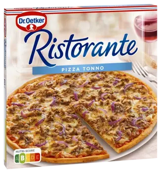 Ingrediënten: TARWEBLOEM, 19% tomatenpuree, 16% KAAS (MOZZARELLA, EDAMMER), 9,2% TONIJN (Katsuwonus pelamis), water, raapzaadolie, 5,6% uien, 1,8% gefrituurde uien (uien, raapzaadolie, zonnebloemolie), bakkersgist, zout, suiker, olijfolie extra vierge, zonnebloemolie, oregano, basilicum, peterselie, bieslook, knoflook, paprika, peper. Kan bevatten: SOJA, MOSTERD.
