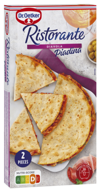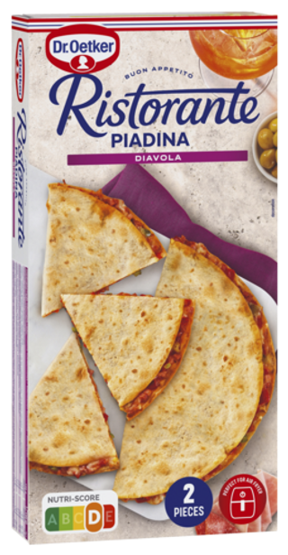 Dun en knapperig gevuld flatbread, gebaseerd op een traditionele regionale receptuur, geliefd in heel Italië. Deze is beschikbaar in 2 smaken: 4 fromaggi en Diavola. Elke verpakking bevat 2 Piadina’s, welke naar wens en behoefte kunnen aangesneden worden in driehoekvormige stukjes. Perfect als tussendoortje of om te delen met vrienden en familie. Bereiden kan in de oven, in de pan of in de airfryer.